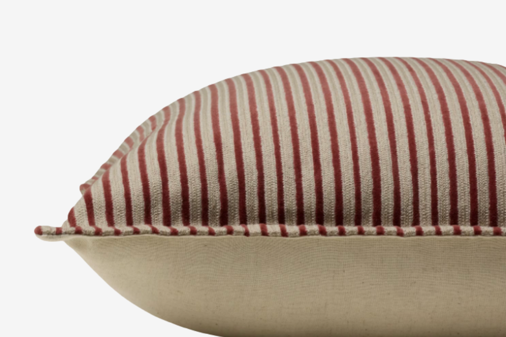 Elevate your pillow game with this ivory pillow, adorned with delicate burgundy velvet stripes for a refined, classic look.