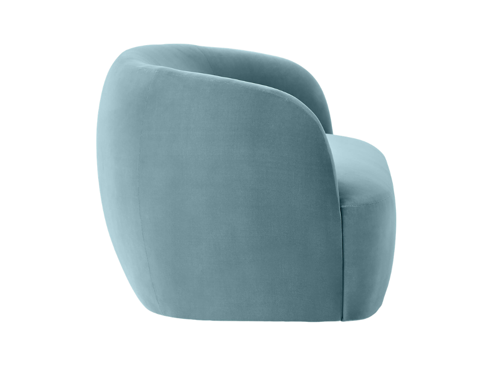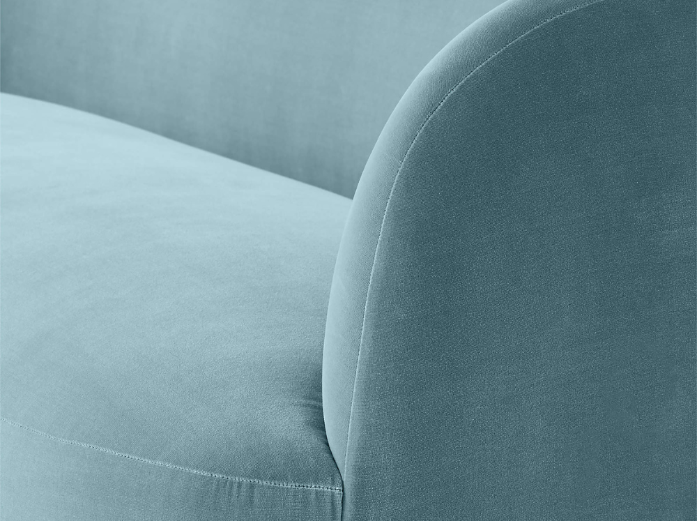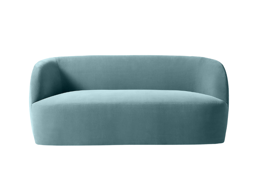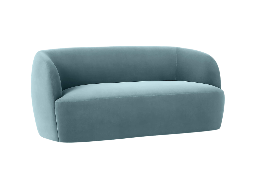 The perfect loveseat with soft curves in lush sky-blue velvet.