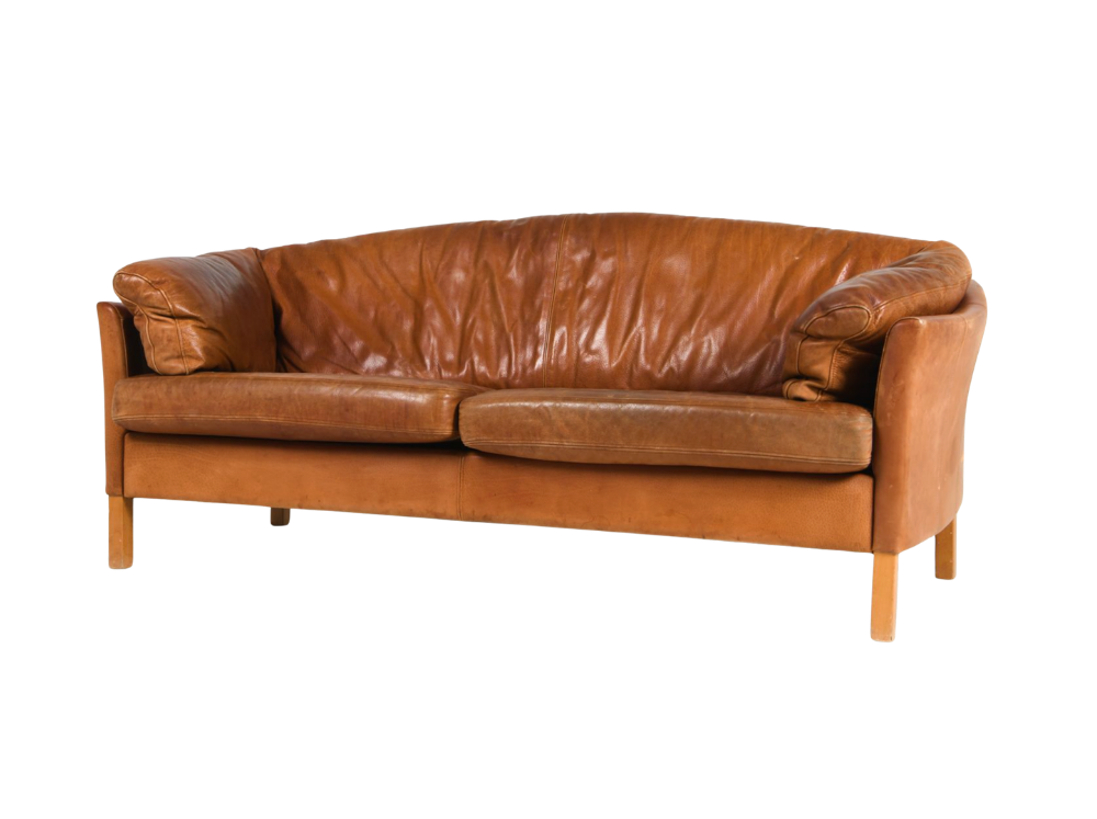 Tags: storied vintage, sofa, leather, danish, original upholstery