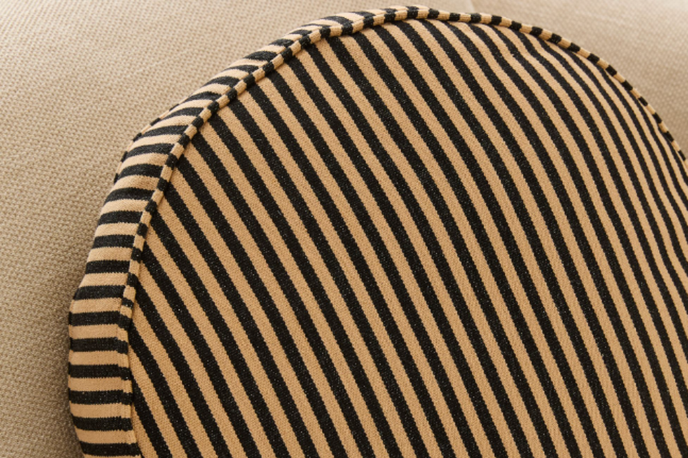 Vintage-inspired and timeless, this round pillow features a neat black and ecru stripe pattern for a classic, tailored look. Pair it with velvets and patterned textiles for a rich, layered mix.