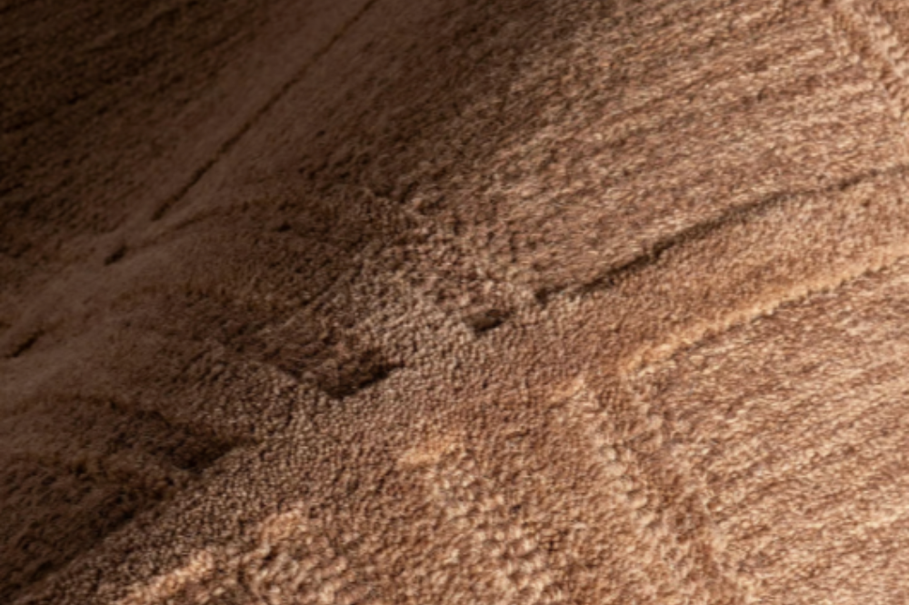 Rich, ruddy brown rug with a subtle check—textural, earthy, and beautifully grounding.